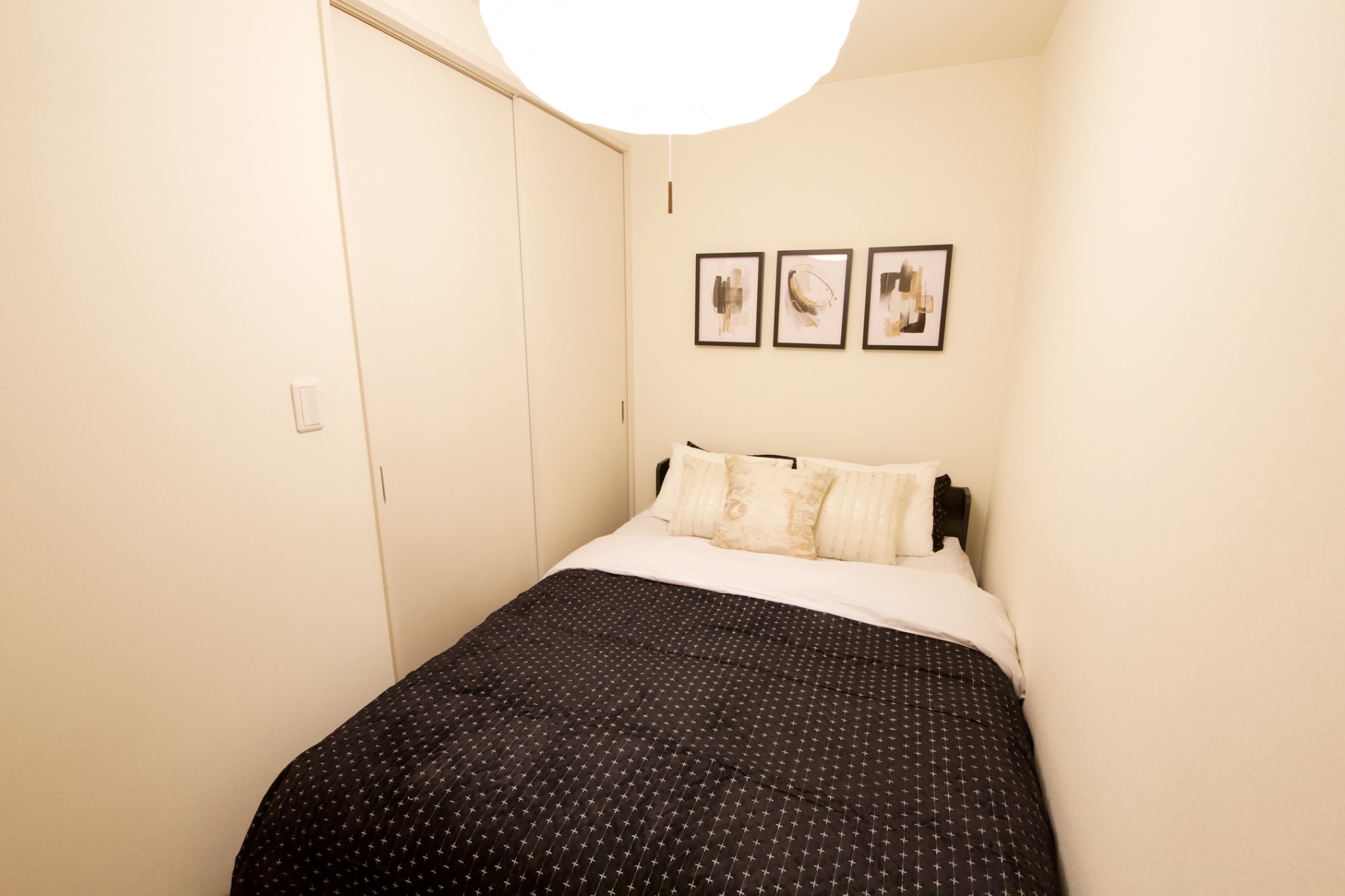 • Space: 東京では希少な65㎡ (700sqft)。リビング横には引き戸で仕切れるクローズドな仕事部屋を完備。